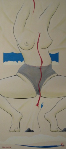 Nach dem 'prototyp' mit dem titel 'bergfrau' male ich eine serie erotischer frauenbilder. Weil ich reine nacktheit weniger anziehend finde als 'spärlich bedeckte nacktheit' bekleide ich meine bergfrauen mit zarten dessous, die sich nahe am body-painting bewegen. Es bleibt etwas raum für fantasie. Von beginn an möchte ich eine verknüpfung zum alpinen herstellen und nehme mir daher die chiemgauer berge vor.